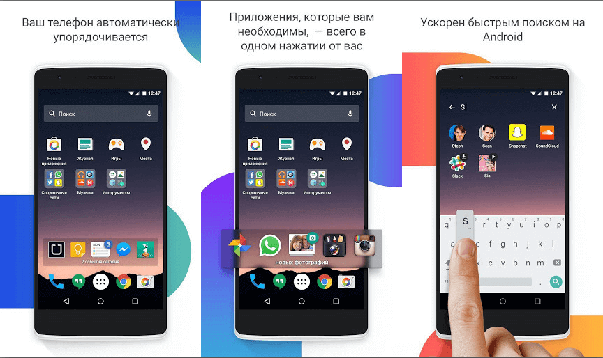 При первом же запуске лаунчер попытается автоматически разложить уже установленные приложения по соответствующим папкам, таким как «Игры», «Музыка», «Социальные сети» и «Новости». Вы можете создавать новые «Умные папки» в любое время, группируя приложения по своему усмотрению.