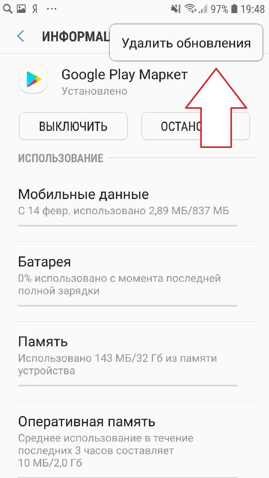 Удалить обновления Play Market
