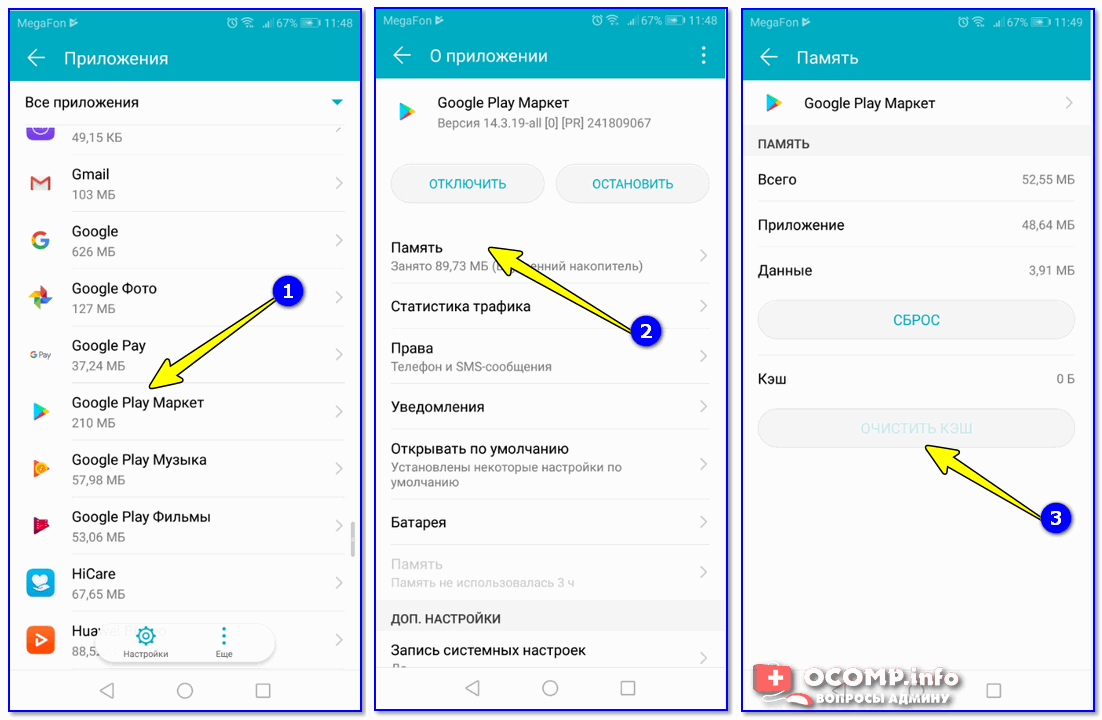 Очистить кэш у Play Market