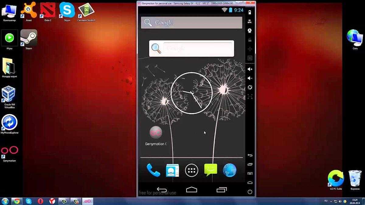 Виртуальная студия для андроид Genymotion Desktop оснащена большим выбором виджетов и датчиков, которыми можно как угодно манипулировать, имитируя любую реальную ситуацию или заданный сценарий: местоположение пальцев на экране, отправка смс, снятие трубки вызова, проверка работы сети, скорость загрузки и т.д.