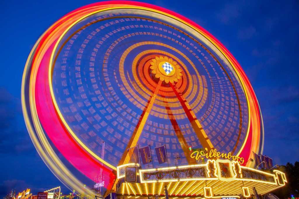 Двухсекундная экспозиция карусели в движении создает мощное впечатление скорости. Фото сделано камерой Samsung NX1 при ISO 100 с фокусным расстоянием 16 мм и диафрагмой f/22 для максимальной глубины резкости.