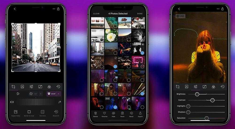 Одно из самых популярных приложений для обработки фото на iPhone. Оно позволяет выставлять нужные параметры света, цветового баланса, насыщенности прямо перед съемкой, чего не позволяет стандартная камера. Полученные изображения и видео можно скорректировать и приукрасить фильтрами.