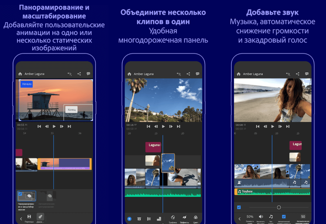 Данное приложение представляет собой нечто среднее между YouCut и VivaVideo. С одной стороны оно не так сильно перегружено различными функциями. С другой же стороны простым наложением дорожек друг на друга дело тут не ограничивается. Присутствует небольшая галерея фильтров для видео и (пусть и не такие обширные, как у YouCut) настройки эквалайзера. Отличительной особенностью программы является возможность создавать слайдшоу из фотографий и накладывать на них музыку. Причем реализована она, судя по отзывам, куда удобнее, чем у двух вышеперечисленных конкурентов. Отлично подойдет для случаев, когда вы хотите как-то «разукрасить» свои снимки, сделанные на отдыхе.