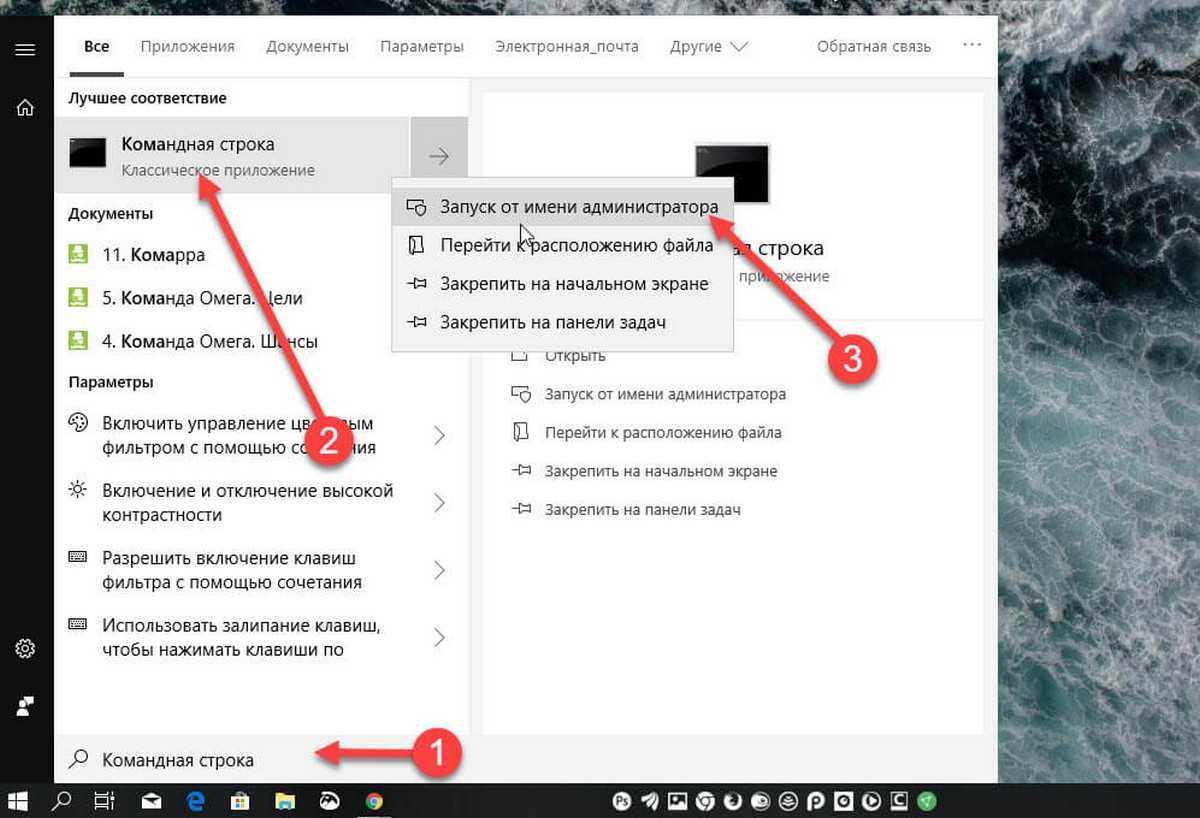 Откройте командную строку от имени администратора. Для этого в меню «Пуск» начните набирать «Командная строка» или «CMD», кликните верхний результат правой кнопкой мыши и выберите «Запуск от имени Администратора». Если вы видите приглашение контроля учетных записей пользователей, нажмите кнопку «Да».