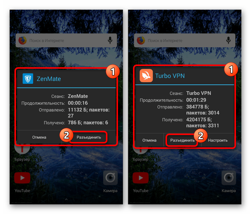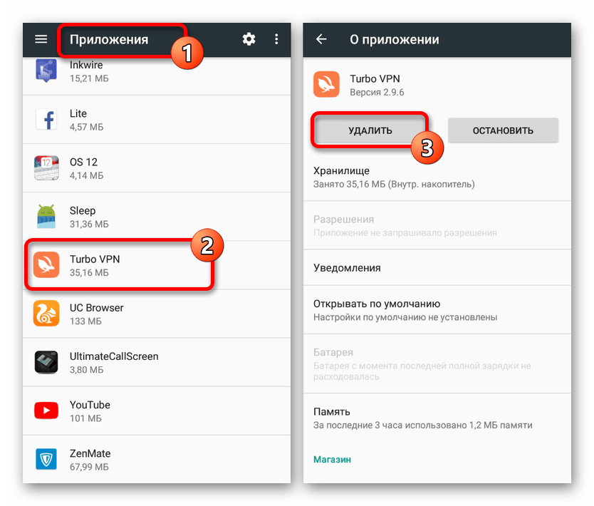 Из-за достаточно большого количества приложений для Андроид, предоставляющих возможность использования VPN, невозможно рассмотреть отключение сразу всех существующих вариантов в рамках одной статьи, однако, к счастью, в большинстве случае процедура сводится к одним и тем же действиям. По этой причине нами представлено всего лишь две универсальные инструкции, вполне применимые для известных приложений вроде ZenMate, Turbo VPN, OpenVPN и многих других аналогов.