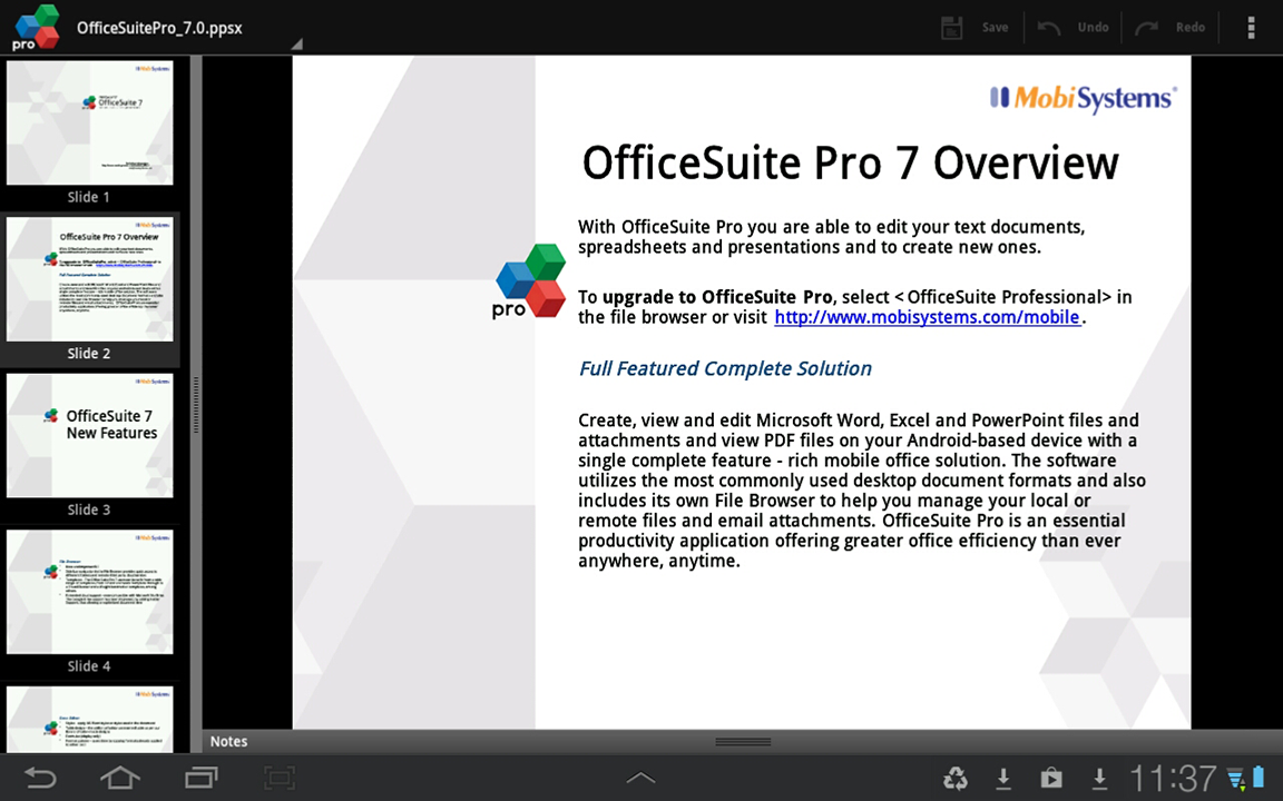 Рассматривая, что такое DOCX и чем открыть на Андроиде данный формат, также следует выделить программу Office Suite, которая также занимает почетное место среди мобильных редакторов текстовых файлов.