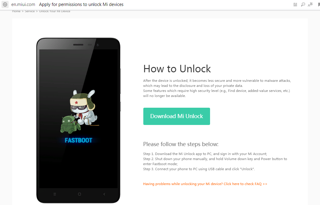 Разблокировка с помощью Mi Unlock от Xiaomi