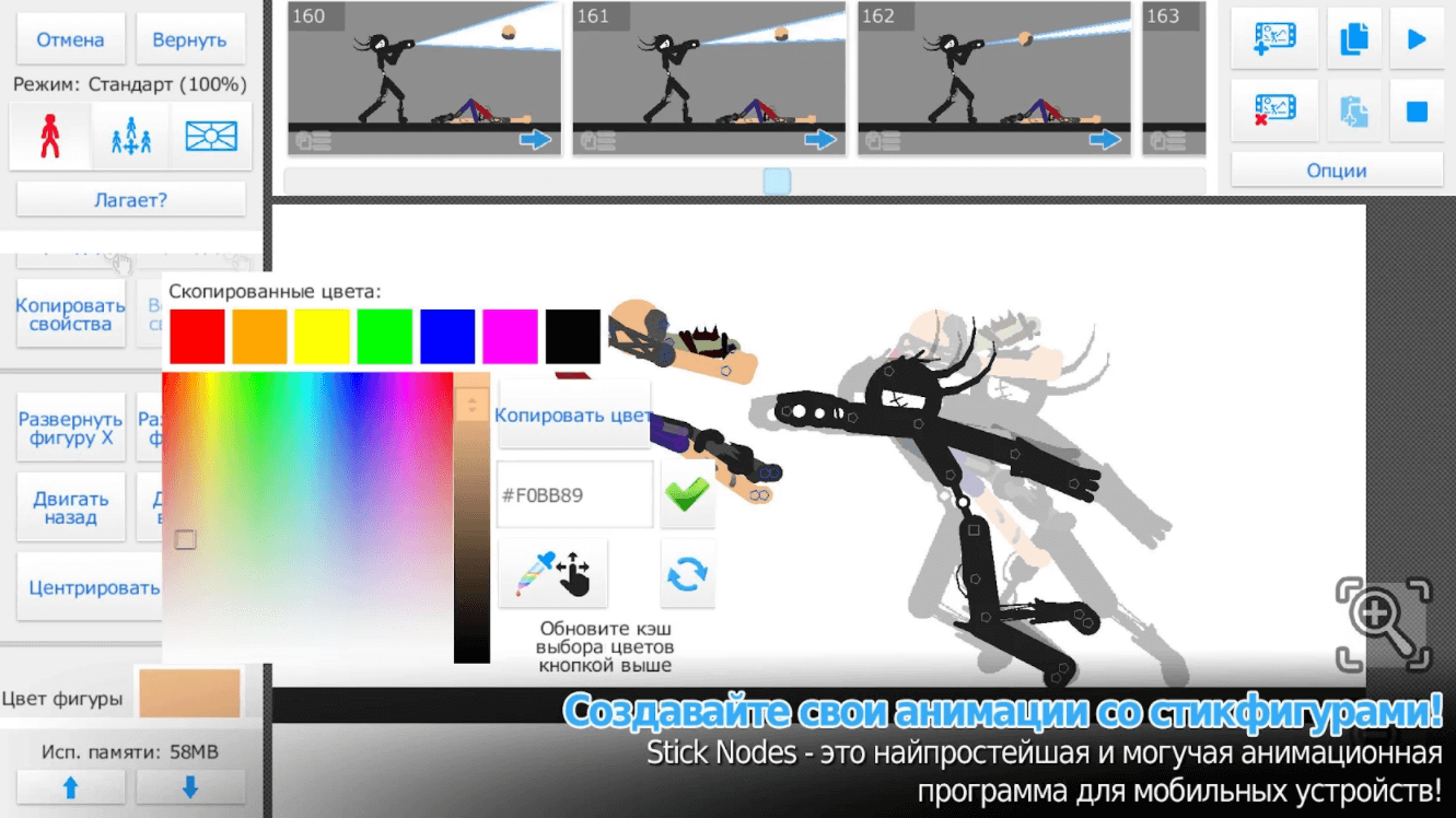 Stick Nodes позволяет мгновенно создавать мультфильмы на основе схематических рисунков и сохранять их в виде гифок или в формате MP4. Приложение автоматически достраивает промежуточные кадры, делая анимацию более плавной. Виртуальная камера перемещениями и наездами добавляет кинематографичности, а еще здесь есть широкий выбор шейпов и оттенков цветов.