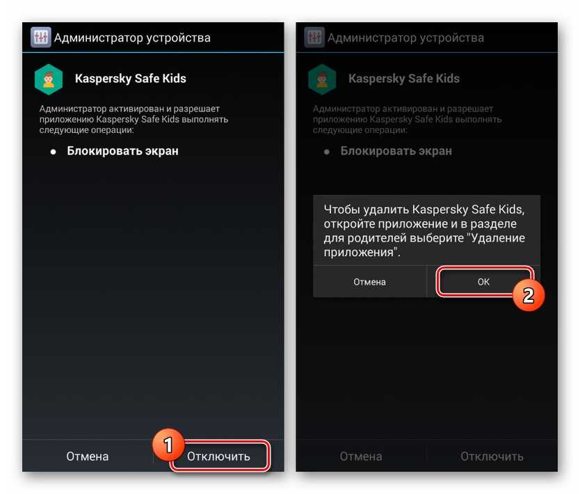 Отключить блокировку «Касперского» можно как через телефон ребенка, так и через устройство родителя. В первом случае инструкция по отключению выглядит следующим образом: