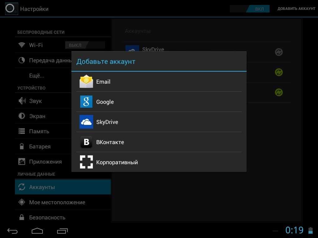 Добавление нового профиля осуществляется в настройках гаджета. Зайдите в пункт «Аккаунты» (чаще всего он называется именно так) и добавьте нового пользователя, кликнув на соответствующую ссылку.