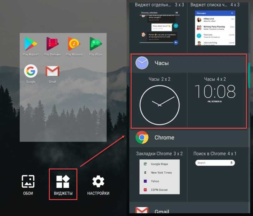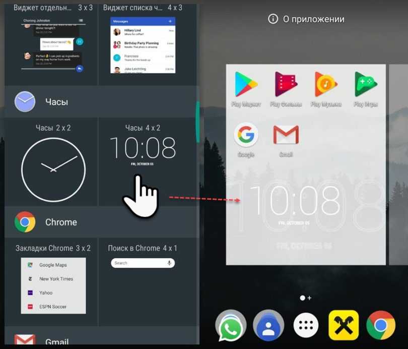 - В открывшемся окне появится список доступных виджетов для смартфона, которые можно установить. Среди них часы.