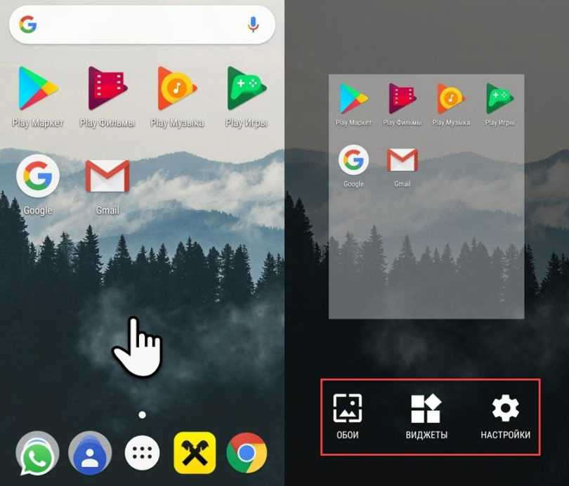 - Найдите на экране смартфона свободное место и удерживайте пальцем.