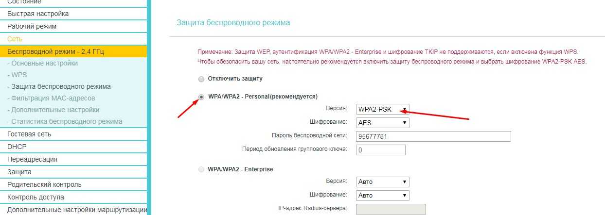 - Обязательно посмотрите, чтобы тип защиты стоял WPA2-PSK. Также не забываем сохранить изменения. Тип шифрование ставим AES.