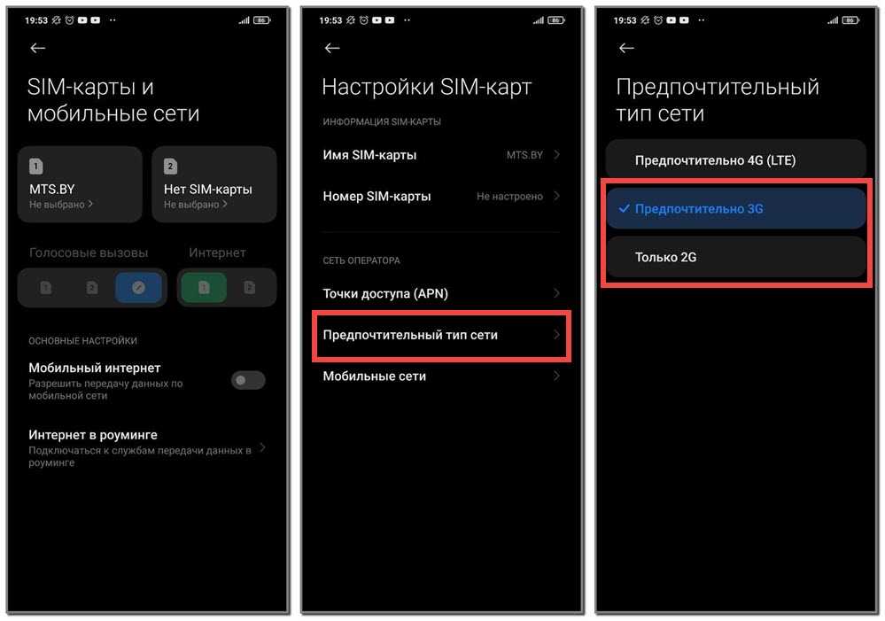 Как показывает практика, в некоторых случаях избавиться от ошибки помогает простое изменение сети. Допустим, что сейчас в качестве предпочтительного типа подключения в настройках устройства вы выбрали 4G. Нужно изменить этот параметр, остановившись на варианте 3G или даже 2G. Как же это сделать? Очень просто, воспользовавшись пошаговой инструкцией: