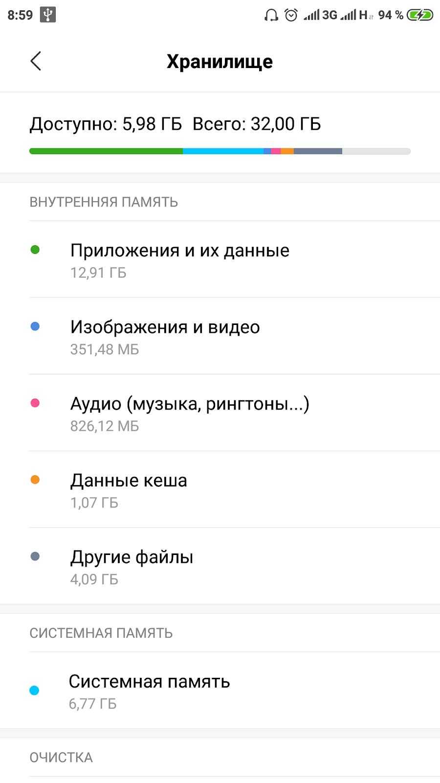 В любом смартфоне есть собственная система контроля состояния внутренней памяти. Обычно она спрятана в разделе «Хранилище» или «Память» настроек гаджета. Здесь вы можете получить наглядную информацию об объеме хранимой в смартфоне информацией с ее разбивкой по типам данных. А, увидев это, можно понять, какие данные больше не нужны.