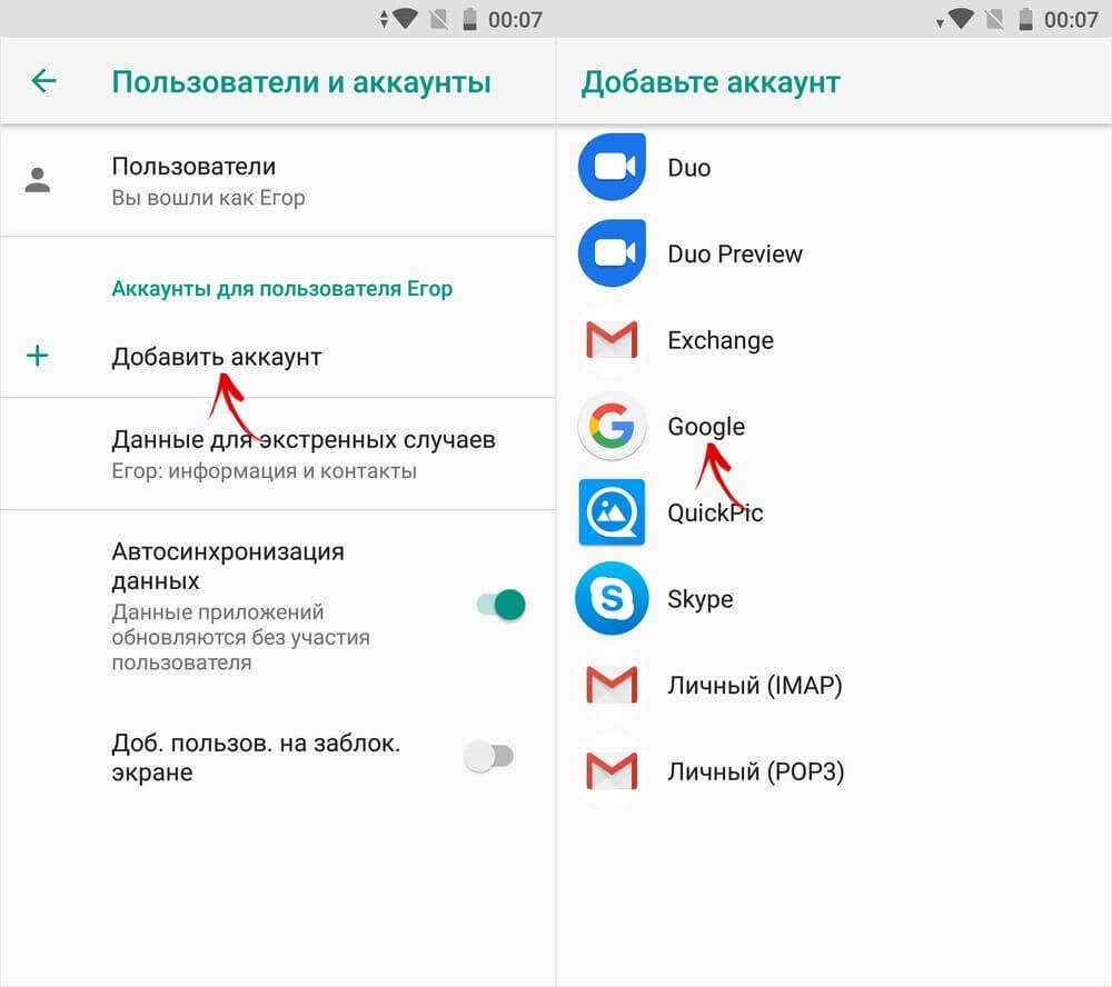 Перезагрузите ваш девайс, зайдите в «Настройки» → «Аккаунты» (или «Пользователи и аккаунты» в Andrоid 8.0+), нажмите «Добавить аккаунт» → «Gоogle».