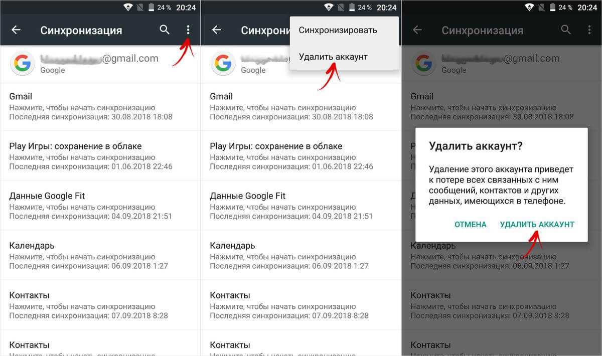 После завершения синхронизации вернитесь к прошлому окну, и дважды нажмите «Удалить аккаунт».