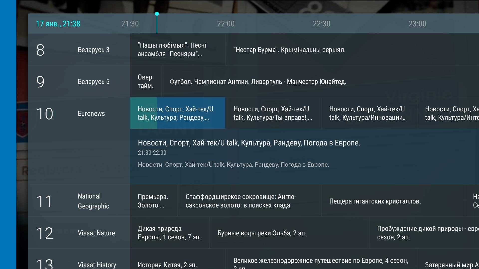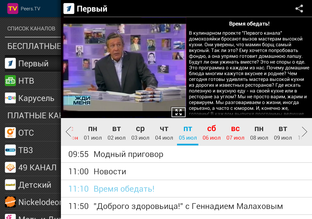 - Есть удобная телепрограмма для всех каналов.