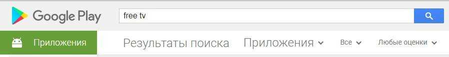 Со своего Андроид устройства (смартфона, телевизора) зайдите в Google Play в раздел «Приложения» и в строке поиска наберите FREE TV