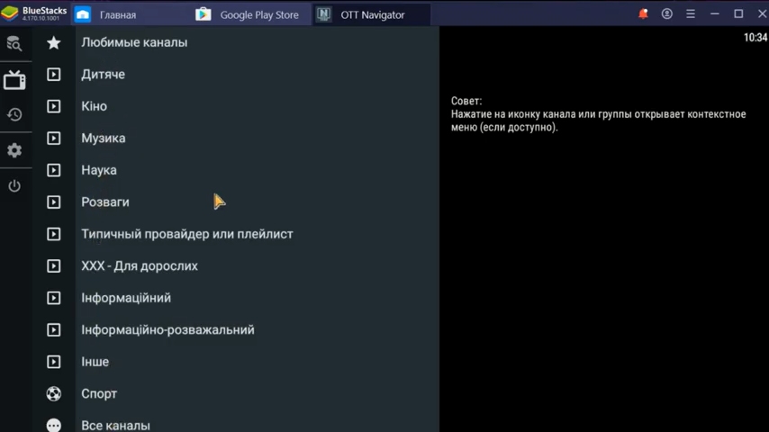 - Есть удобная сортировка телеканалов по жанрам.