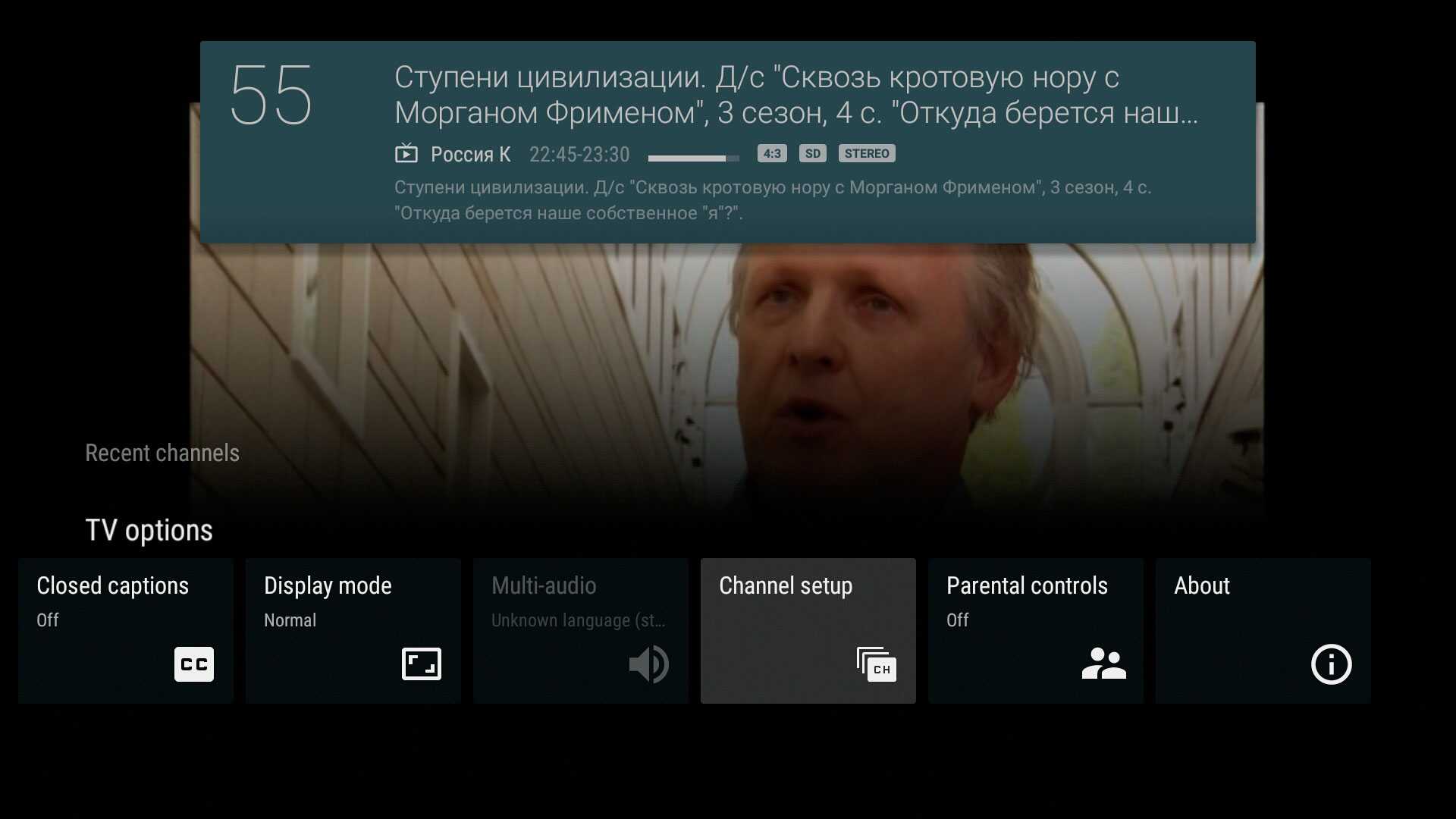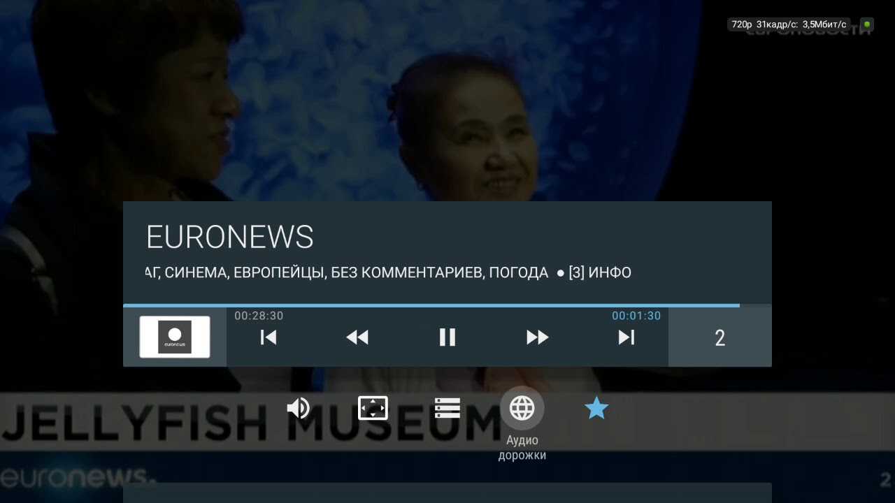 - Под видео показано подробное описание текущей телепередачи.