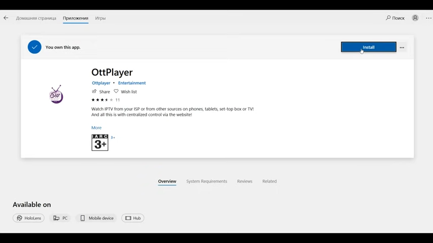 - Найти скачанную программу ОТТ плеер.