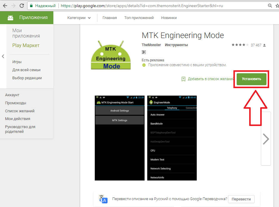 Также, вы можете выбрать любую другую программу для работы с инженерными настройками, введя в поле для поиска в магазине словосочетание «Engineering Mode».