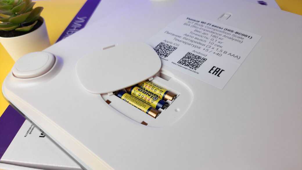 Умные весы покрыты надёжным закалённым стеклом и работают от трёх ААА-батареек. Экран яркий, но в нашем случае попался с браком и показывал одну цифру не полностью.