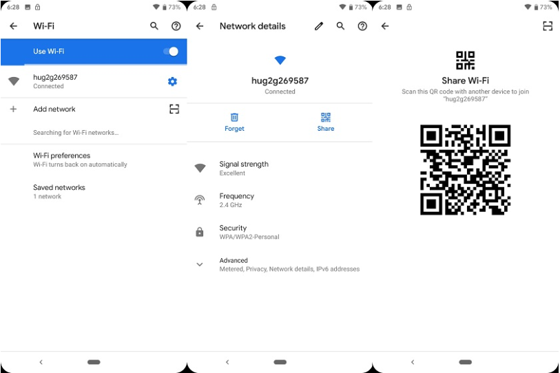 Технология элементарна в применении. Достаточно как обычно открыть соединение Wi-Fi, но затем нажать на новую кнопку «Поделиться». Функция доступна только на разблокированном устройстве, поэтому смартфон попросит ввести пароль или приложить палец к дактилоскопическому датчику. В скорости отобразится QR-код, другу останется его только отсканировать. На этом все, доступ к сети стал доступен. Пусть это и не новая технология в мире смартфонов, но ее встроенная поддержка в Android – приятная новинка.