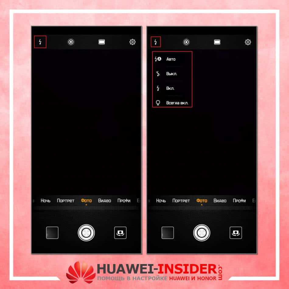 Вспышка на телефонах Хуавей работает в нескольких режимах, пользователь сам определяет формат ее применения.