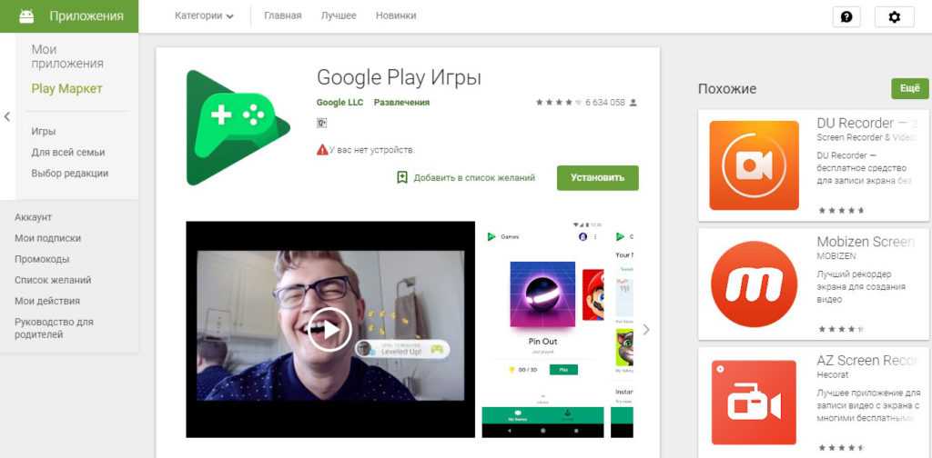 Приложение позволяет записывать видеоролики с разрешением до 720p и записывать только ваши игры. Чтобы записывать видео в Google Play Games, просто запустите игру и используйте виджет записи, чтобы начать или остановить запись.