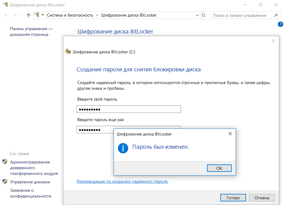 Рассмотрим еще две ситуации: изменение пароля BitLocker и управление зашифрованным диском.