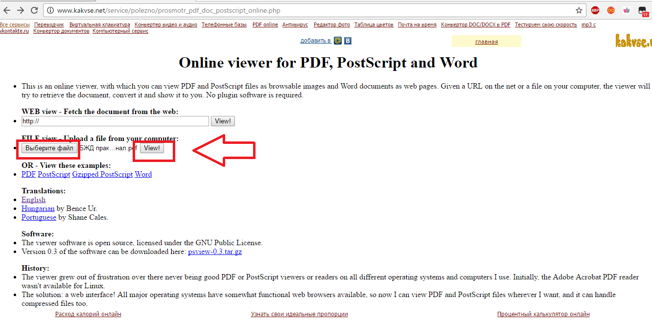 Первый сайт, KAKVSE – один из самых простых и быстрых онлайн-инструментов для просмотра файлов в формате PDF, Doc или PostScript.