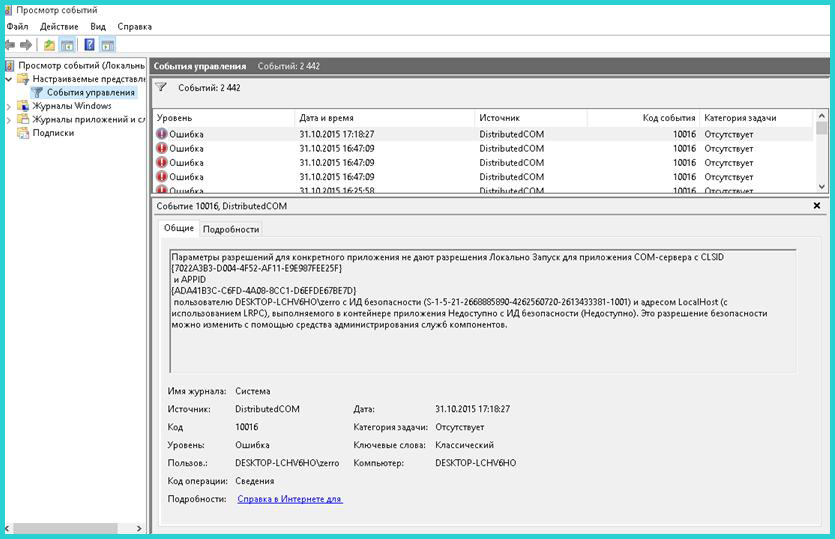 Уведомление с кодом 10016 несет в себе множество описаний в системном журнале событий, поэтому следует узнать, какие инструкции выполнял компьютер перед появлением ошибки. Это поможет решить проблему, а не гадать, что именно ее вызвало.