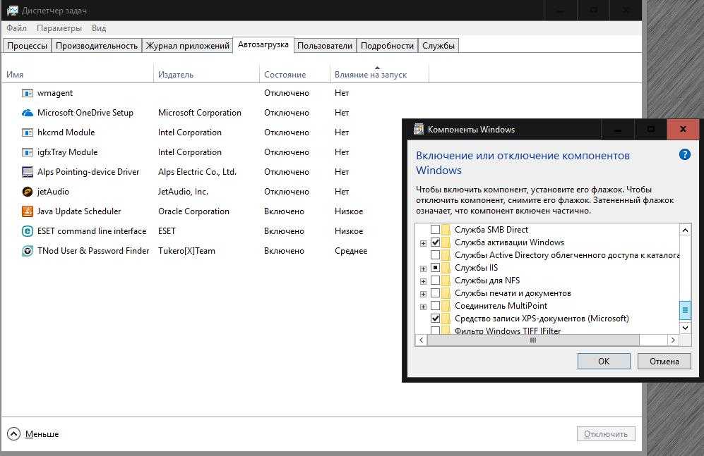 На всякий случай просмотрите активные компоненты системы в разделе программ и компонентов и отключите неиспользуемые (модуль Hyper-V, Internet Explorer, если используете другой браузер, службу печати, если нет принтера, и т. д.). Аналогично можно установить отключенный тип запуска и для некоторых других служб (services.msc), но в этом случае нужно точно знать, что можно деактивировать, а что нет.