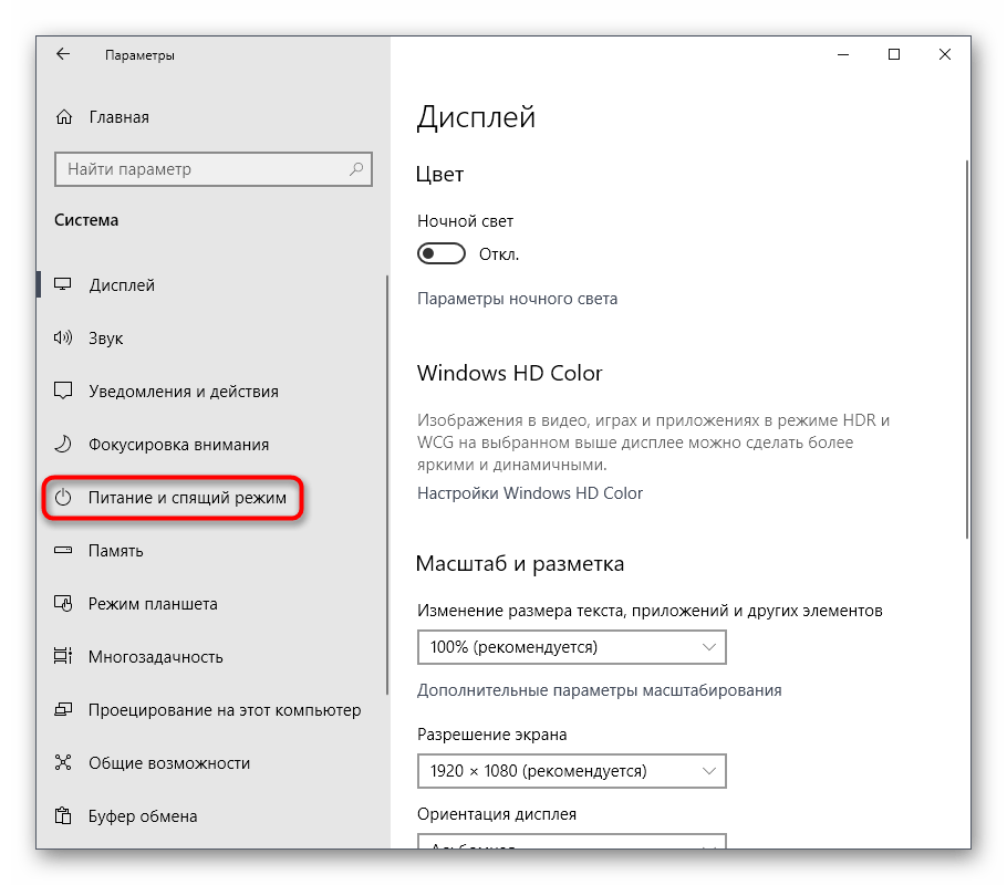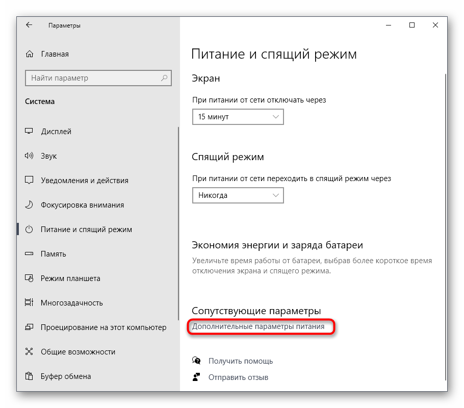 Опуститесь вниз и нажмите по строке «Дополнительные параметры питания».
