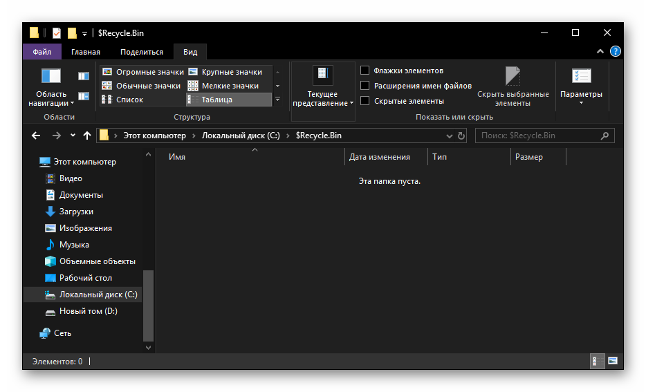 - Или же вы можете использовать опцию «фильтр > корзина», чтобы быстро найти файлы корзины.