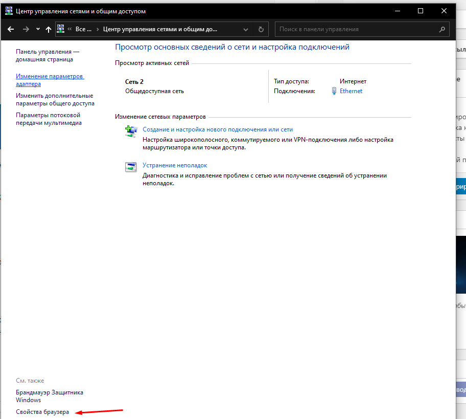 - Активировать раздел «Управление настройками браузера». Всплывет окошко «Свойства».