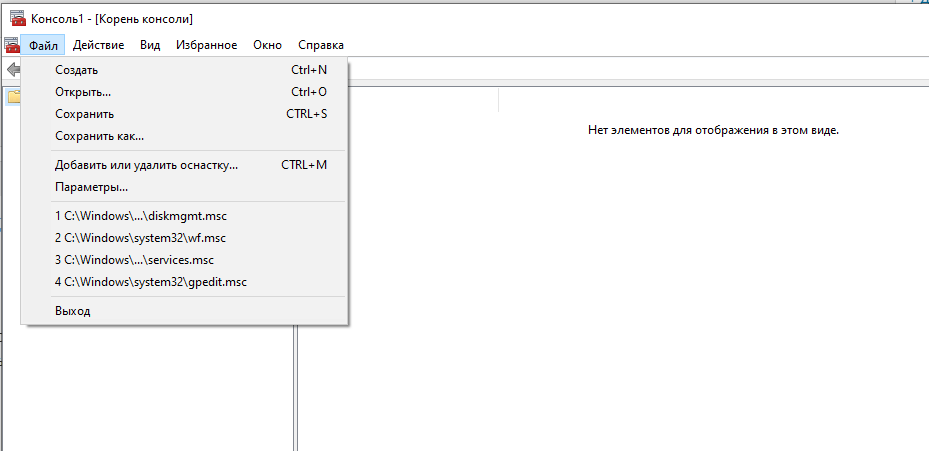 - Откройте пункт меню Окно и выберите Корень консоли.