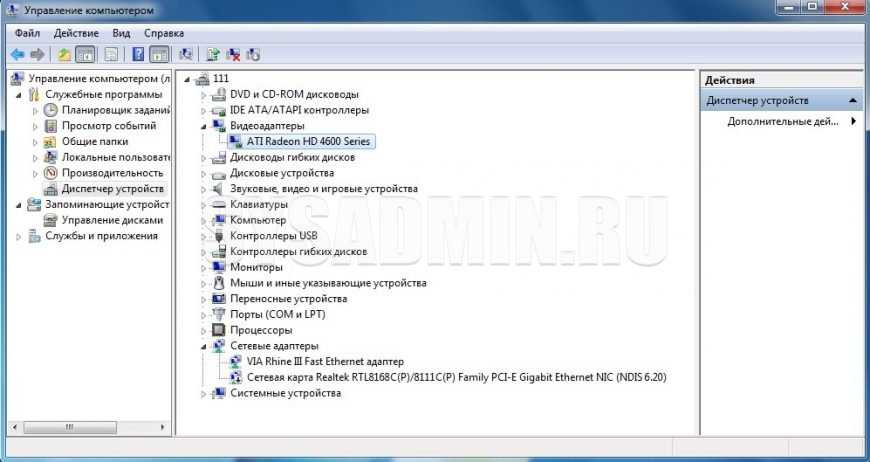 9) Если на мониторе присутствуют какие-то полосы, замыленность или другие артефакты, то можно обновить драйвера видеокарты. Для этого идем по следующей цепочке “Контекстное меню моего компьютера – Управление – Диспетчер устройств”.
