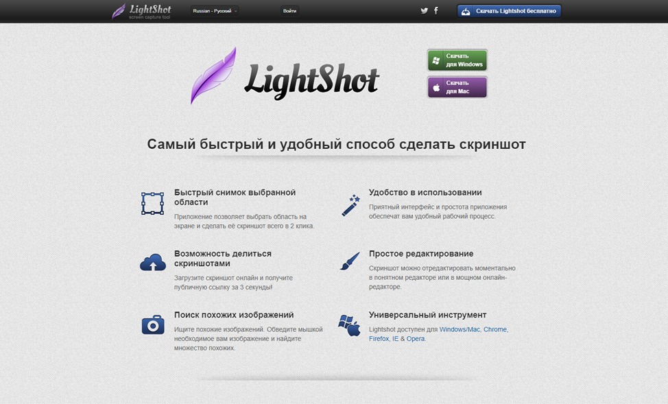 Он позволяет делать снимки как отдельных окон и всего экрана, так и выборочных фрагментов.