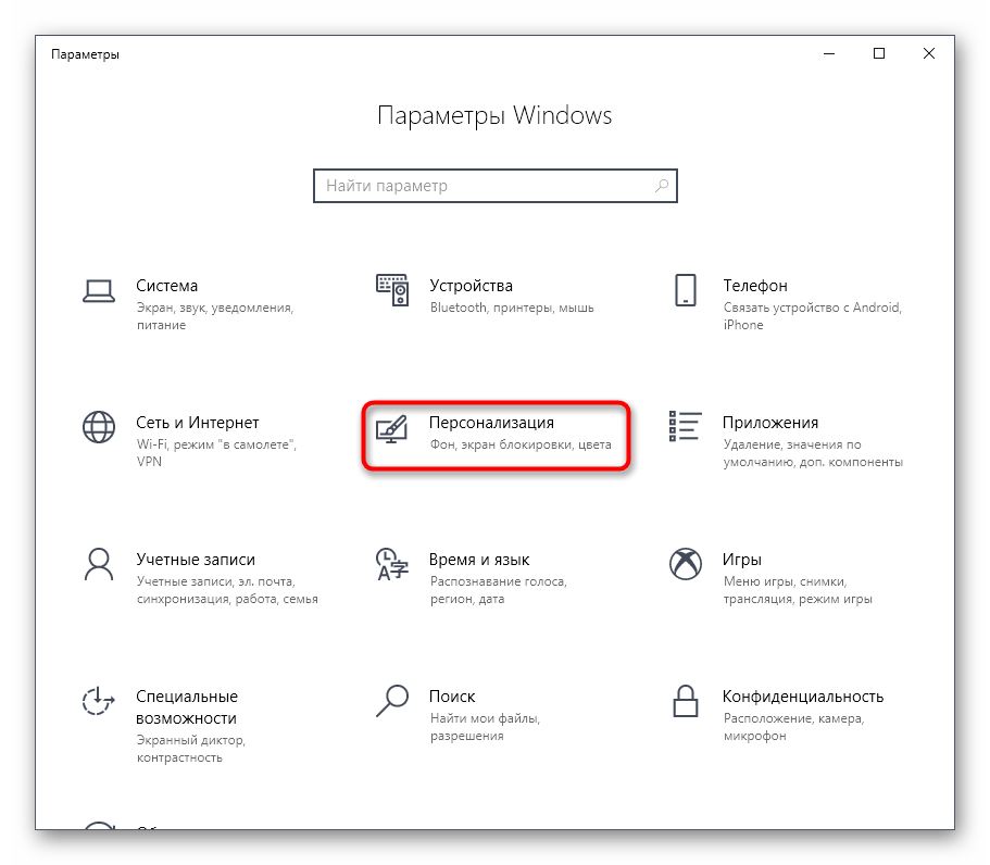 Здесь откройте раздел «Персонализация», выбрав соответствующую плитку.
