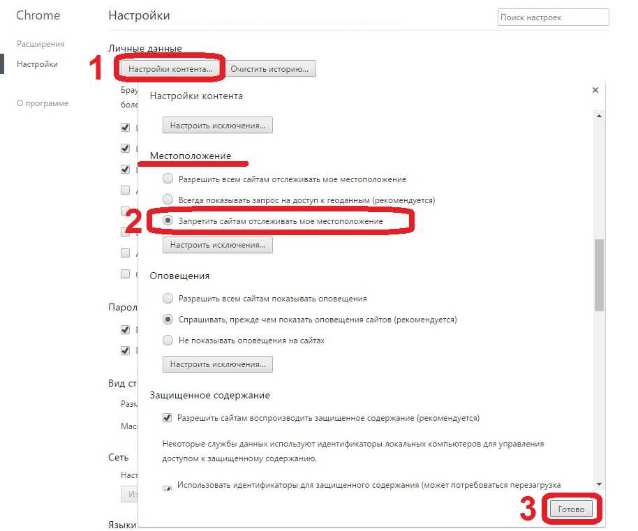 Заблокировать геолокацию в браузере «Гугл Хром» можно по следующей инструкции:
