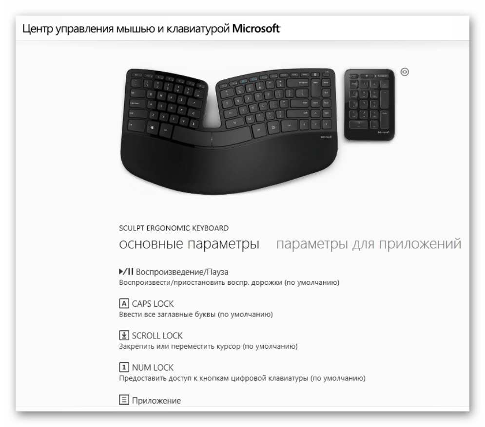 - Запустите «Центр управления мышью и клавиатурой» (если его нет, то скачайте и установите с официального сайта Microsoft).Установите «Центр управления мышью и клавиатурой» и запустите его