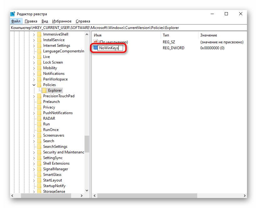 Под отключением сочетаний с клавишей Windows подразумевается запрет на использование комбинаций типа Win + R, Win + X, вызывающих различные системные функции и приложения. При этом сам «Пуск» будет продолжать открываться. Метод подходит для пользователей, не нуждающихся в подобных сочетаниях клавиш и/или периодически случайно нажимающих их. Чтобы отключить именно действие, которое происходит при нажатии клавиши Windows, воспользуйтесь одним из способов, расписанных в Варианте 2.