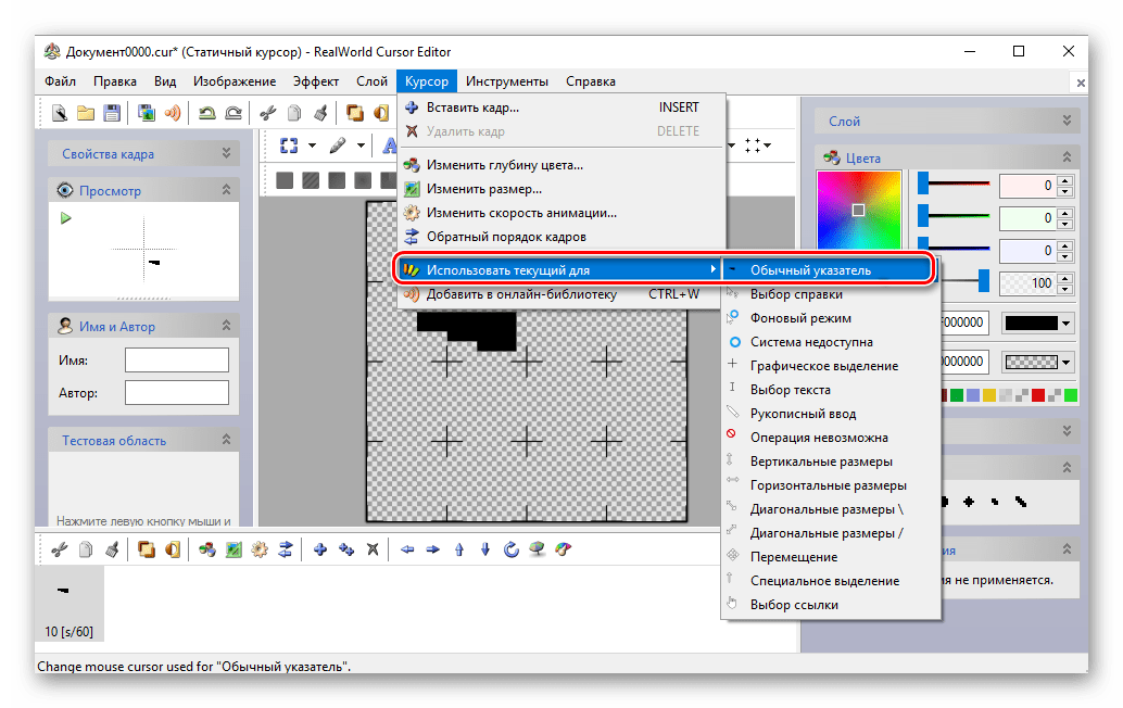 - Нарисуйте указатель, используя встроенный редактор.
