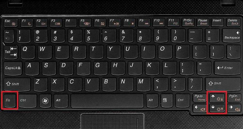 Сама кнопка Fn обычно расположена рядом с «Пуск», а вот клавиши для регулировки яркости могут быть на любых кнопках в панели F1 — F12 или на стрелках — их легко отличить по знаку в виде солнышка. На нашем ноутбуке, например, сделать экран темнее или ярче можно с помощью F6 и F7.