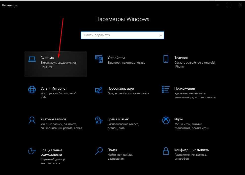 Затем в предложенном списке разделов приложения «Параметры» выберите раздел «Система».