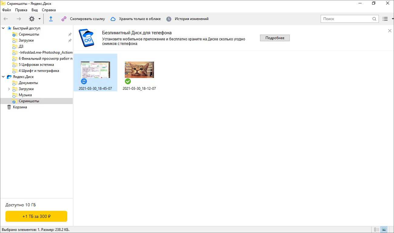 Однако, в отличие от ФотоСКРИНА, приложение не позволяет выбирать папку вручную, поэтому может возникнуть вопрос, где искать скриншот на ноутбуке или ПК. В обоих случаях созданный кадр автоматически отправляется в подпапку «Скриншоты» на Яндекс.Диске. Получить доступ к этим файлам можно как с компьютера, так и через браузер в онлайн-версии сервиса.