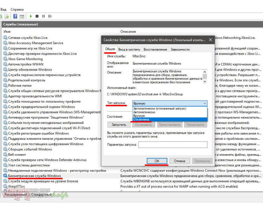 - Дальше заходим в свойства службы и изменяем Тип запуска с Автоматически на Отключена.